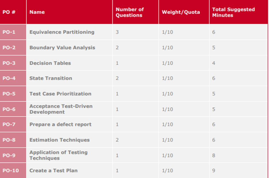The Foundation Level Mobile Application Testing exam is comprised of 40 multiple-choice questions, with a pass mark grade of 65% to be completed within 60 minutes. Participants that take the exam not in their spoken language, will receive additional 25% time, for a total of 75 minutes.